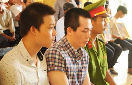 Lê Tấn Khỏe và Lê Minh Phát tại phiên tòa phúc thẩm lần 1.