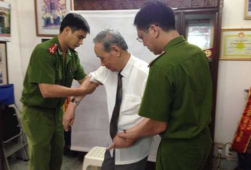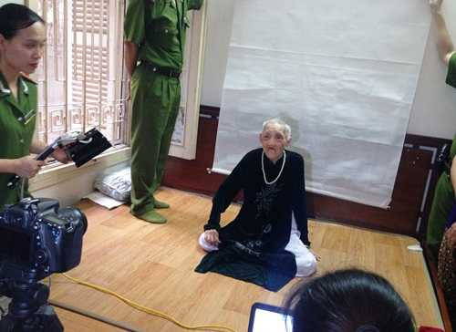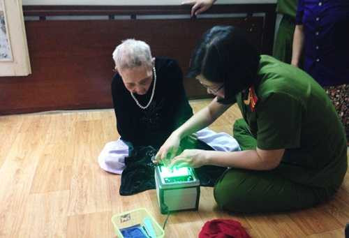 | Cán bộ công an lấy dấu vân tay của cụ Cúc |