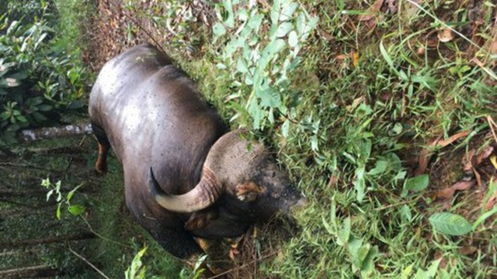 Khoảng 6h30 ngày 13/4, Hạt Kiểm lâm Khu Bảo tồn nhận tin báo có một con bò tót đang sa lầy dưới ao lục bình thuộc khoảnh 4, Tiểu khu 162. Hạt huy động lực lượng cùng người dân cột dây thừng vào sừng để kéo bò tót lên bờ rồi áp dụng các biện pháp cứu hộ. Sinh vật kém may mắn này chết lúc 12h30.