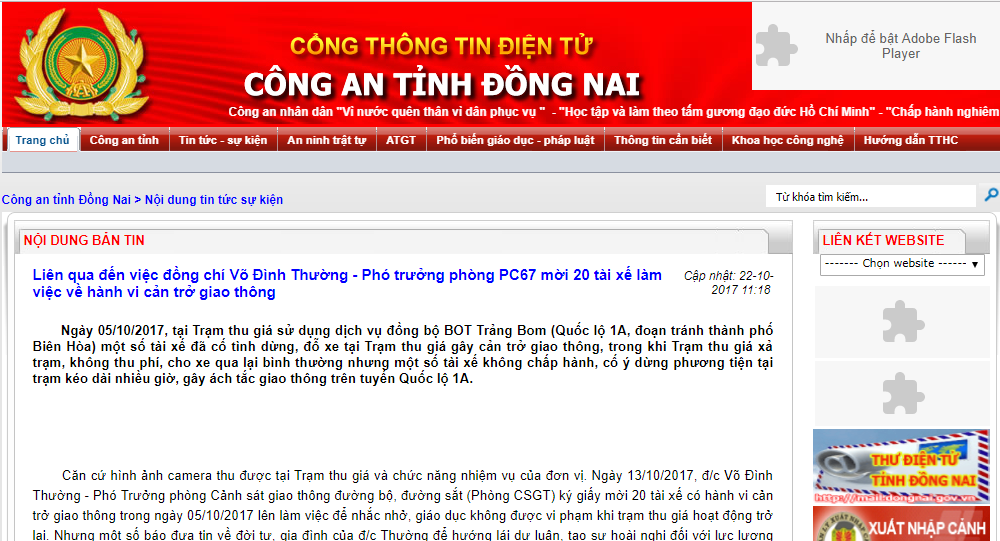 Trưa 22/10, Công an tỉnh Đồng Nai đã thông tin chính thức sự việc liên quan đến Thượng tá Võ Đình Thường - Phó phòng CSGT tỉnh Đồng Nai.