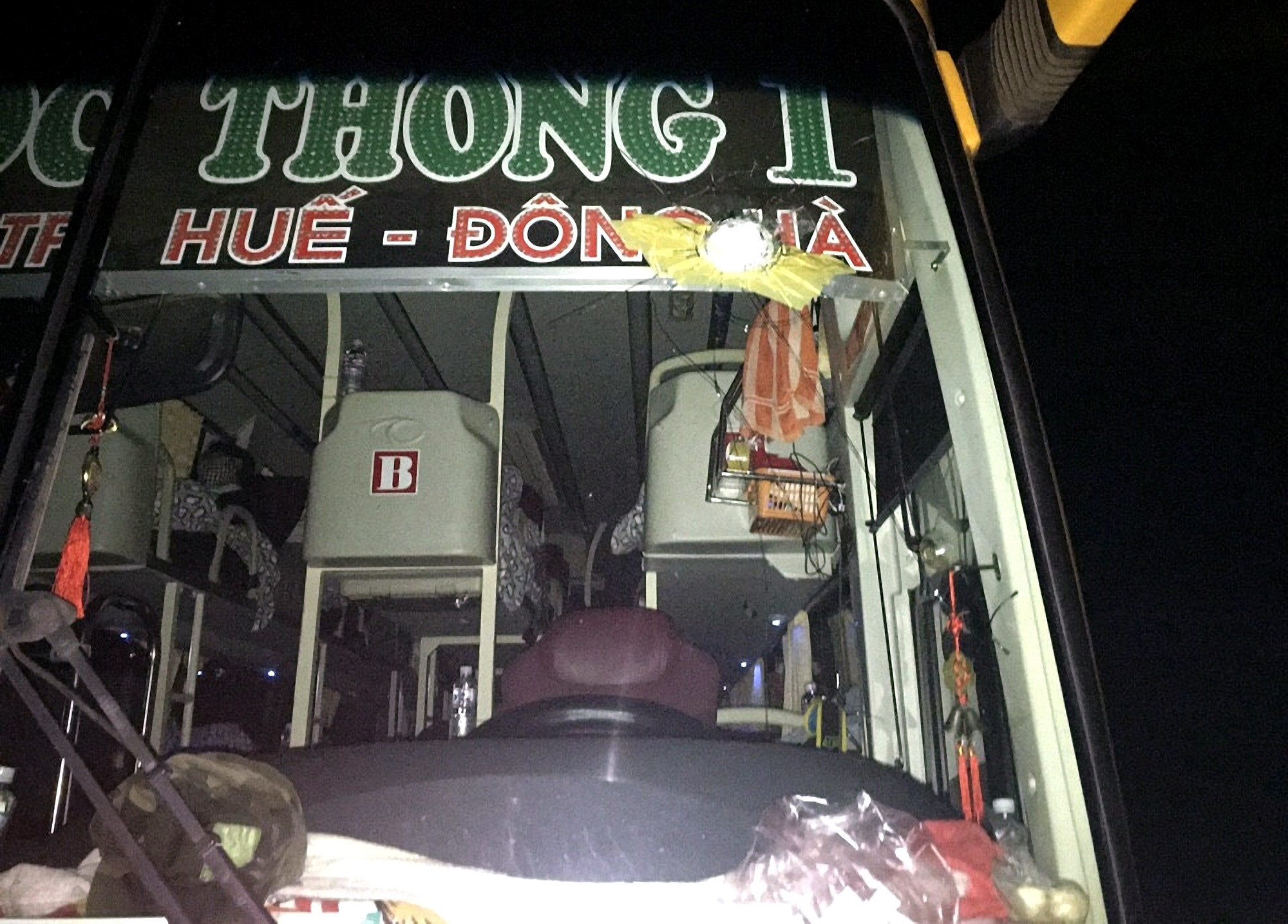 Khoảng 19h ngày 29/9, chiếc xe khách chạy tuyến Kon Tum-Nha Trang của nhà xe Cúc Tùng đi qua địa phận làng Buil, xã Nghĩa Hưng, huyện Chư Pah thì bị một nam thanh niên cầm đá ném vào kính xe, khiến kính chắn giõ bị vỡ nát, hành khách được một phen hết hồn.