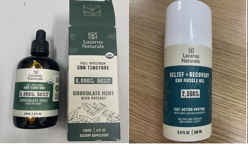 Những loại ma túy này được tiếp cận thông qua các sản phẩm có tên gọi “Lazarus Naturals Full Spectrum CBD TINCTURE” và “Lazarus Naturals RELIEF + RECOVERY CBD MUSCLE GEL”.