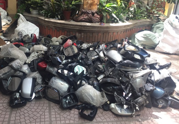 Gương và các thiết bị ô tô do nhóm "đạo chích" trộm cắp bị cơ quan chức năng thu giữ. (Ảnh: CACC)