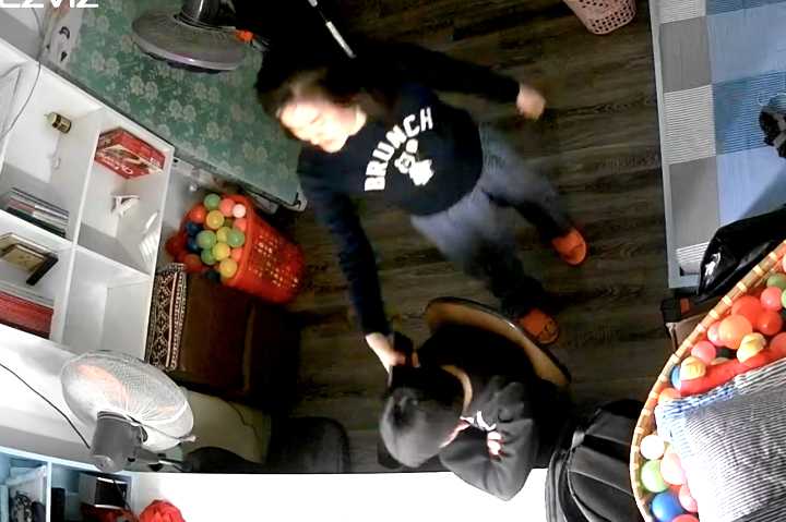 Một video trích xuất camera được đăng tải trong bài viết ghi lại hình ảnh người phụ nữ cầm điện thoại đánh vào đầu bé trai, yêu cầu bé đứng lên cúi mặt nhìn xuống bàn, không được phép ngồi ghế.