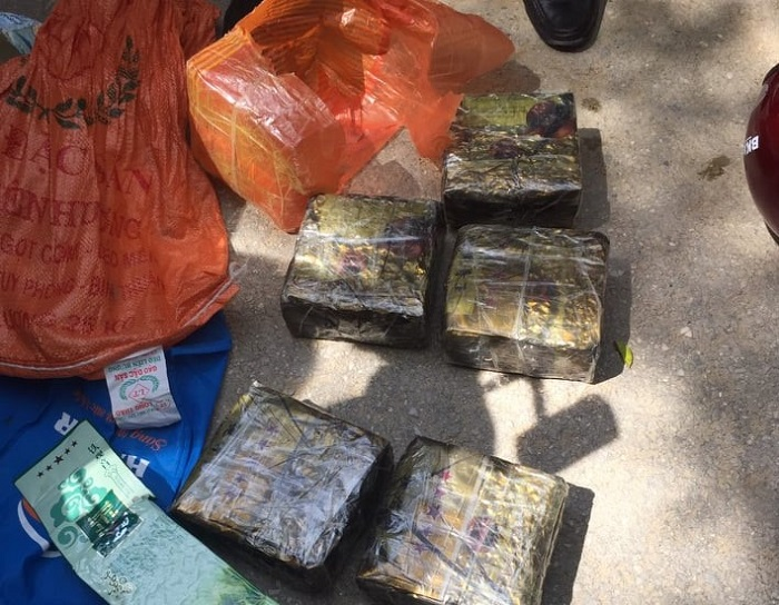 Tại hiện trường, lực lượng công an thu giữ 5kg ma túy dạng đá, 1kg ke và 1 bánh heroin được Tuấn giấu trong bao tải phía trước xe.