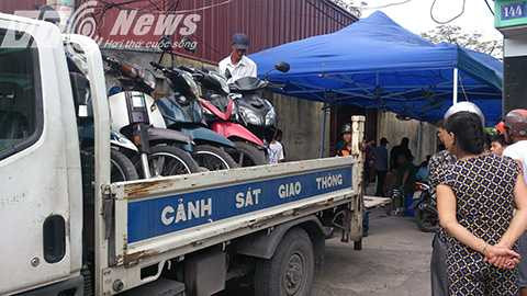 | Sử dụng xe đẳng chủng vận chuyển phương tiện, tang vật về cơ quan Công an tiếp tục điều tra làm rõ - Ảnh MK |