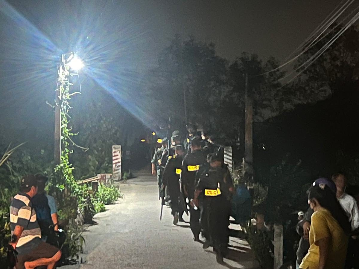 Ghi nhận của PV VTC News, tại con lộ liên ấp 7 tại xã Lương Hòa, huyện Bến Lức, tỉnh Long An, cơ quan chức năng bố trí cả trăm cảnh sát chốt chặn. Khoảng 50 - 100m dọc theo con lộ, được bố trí 1 nhóm từ 3 - 5 cảnh sát túc trực.
