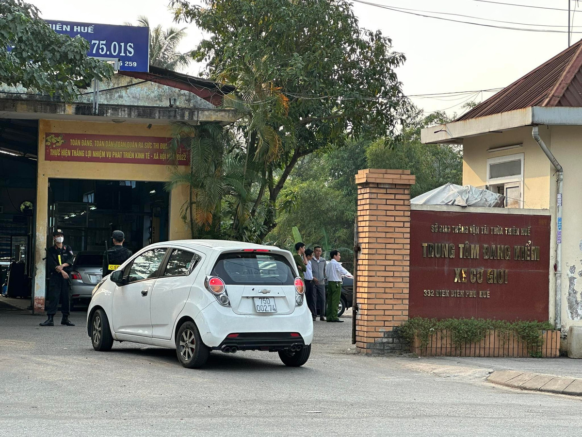 Hiện công an đang tiếp tục làm việc và Trung tâm đăng kiểm xe cơ giới Thừa Thiên - Huế đang tạm đóng cửa.