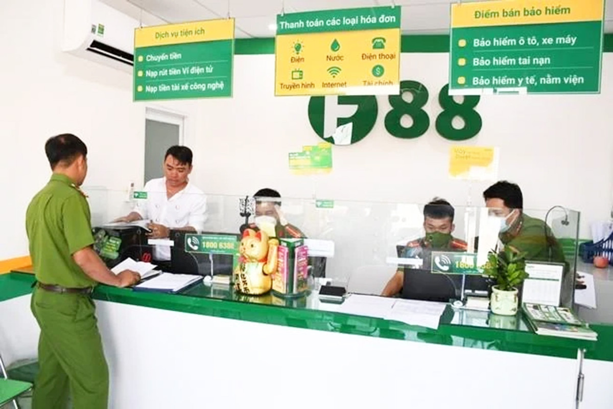 Công an Tiền Giang kiểm tra các chi nhánh F88 trên địa bàn tỉnh.