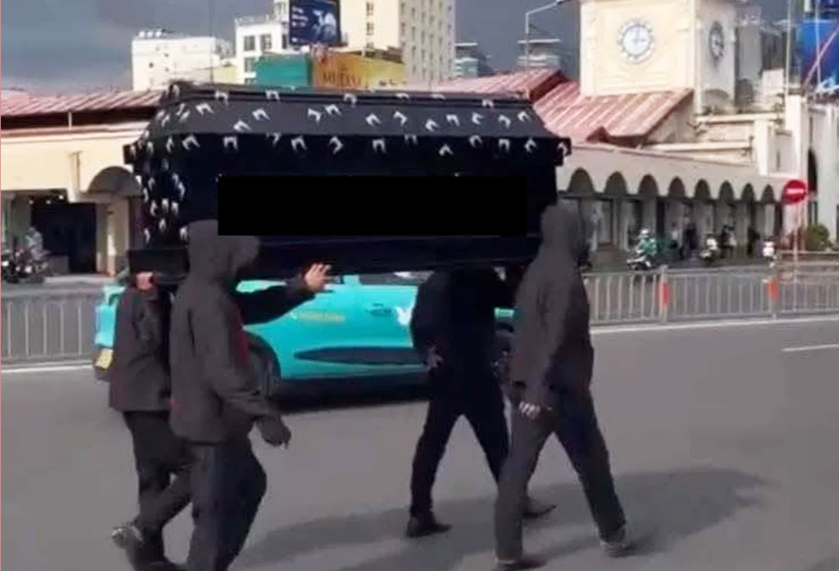 Trước đó, đoạn clip dài khoảng 30 giây lan truyền trên mạng xã hội, bốn thanh niên mặc đồ đen, trùm đầu, mang khẩu trang, khiêng quan tài có viết chữ trắng đi nhiều vòng trước khuôn viên chợ Bến Thành. Nhóm này còn mang hòm đi bộ giữa dưới làn xe máy đang chạy qua lại và băng qua đường.