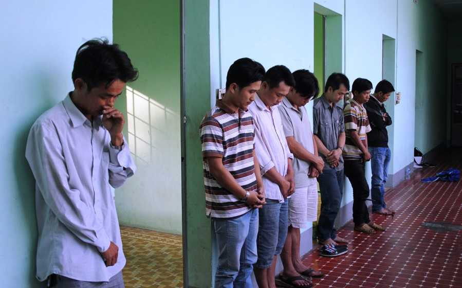 Các đối tượng tham gia trường gà bị công an triệt phá tại cơ quan điều tra
