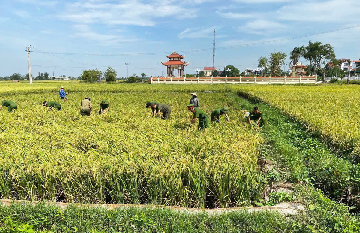 Ngày 5/10, Công an xã Thái Ninh cử cán bộ, chiến sĩ xung kích về giúp bà con nông dân thu hoạch lúa vụ Hè - Thu, góp phần giảm thiểu thiệt hại do bão lũ gây ra.