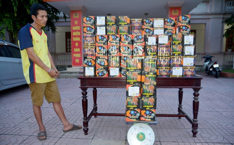 Nguyễn Đăng Nhân và số lượng lớn pháo nổ bị bắt giữ. (Ảnh: BNA)