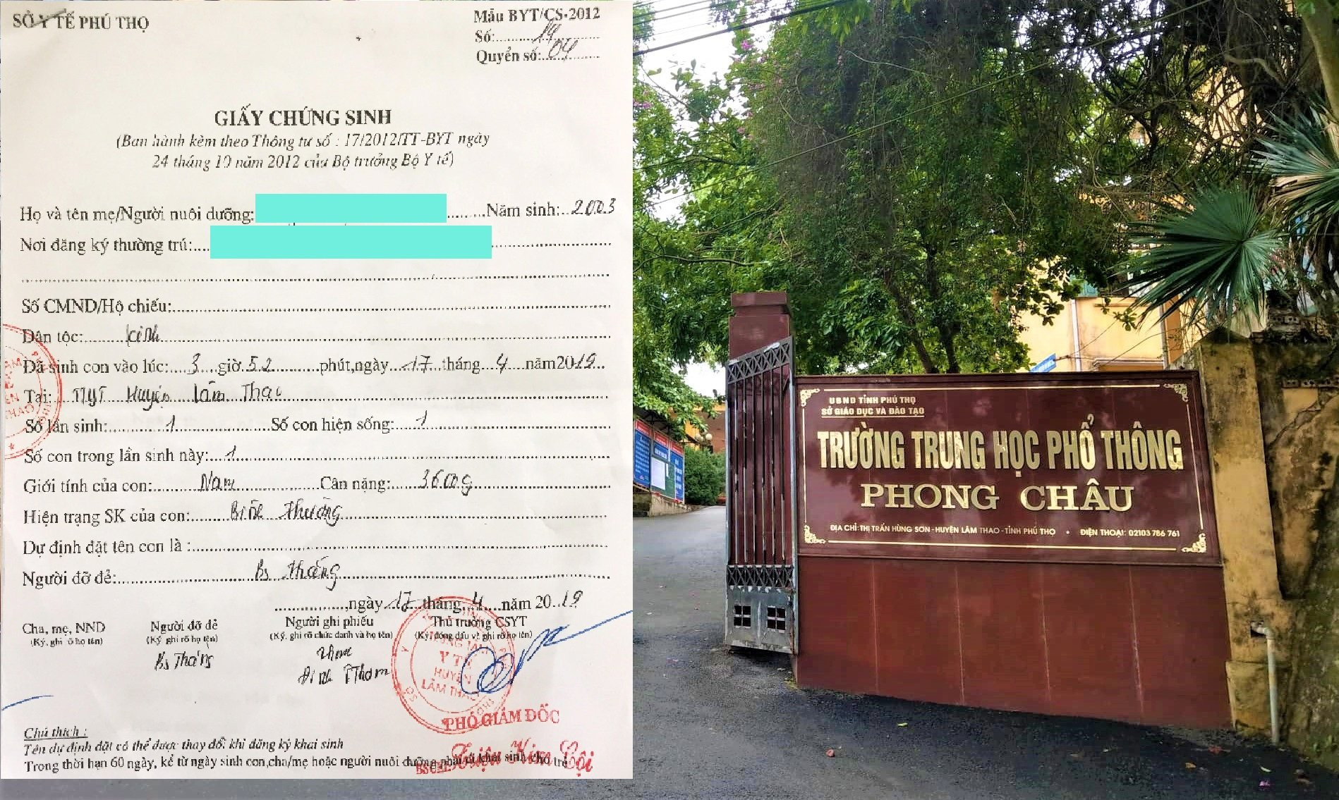 Riêng trường hợp em N.T.B.H nghỉ học vào ngày 11/2/2019 với lý do vì “việc riêng của gia đình”. Đến ngày 17/4/2019, H. đã sinh một bé trai và làm thủ tục đăng ký khai sinh tại xã Sơn Vi, trong giấy khai sinh không ghi tên bố đứa trẻ.