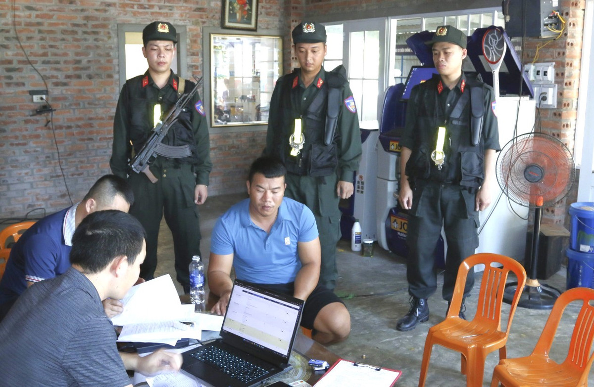 Sau khi có đầy đủ chứng cứ, tài liệu, ngày 21/6/2024, Phòng Cảnh sát hình sự phối hợp với các đơn vị đã triệu tập làm việc đối với 20 người. Khám xét khẩn cấp chỗ ở của Nguyễn Xuân Hùng và Nguyễn Văn Thưởng, thu giữ 15 điện thoại đi động, máy vi tính, các tài liệu có liên quan hoạt động đánh bạc và 70 triệu đồng.