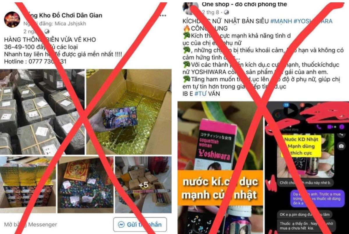 Với thủ đoạn tương tự, Dũng và Tâm lập nhóm “Tổng kho đồ chơi dân gian” đăng tải các bài viết, video, hình ảnh về pháo hoa nổ và nhóm Mua bán tủ lạnh, điều hoà nhằm chiếm đoạt tiền cọc của bị hại.