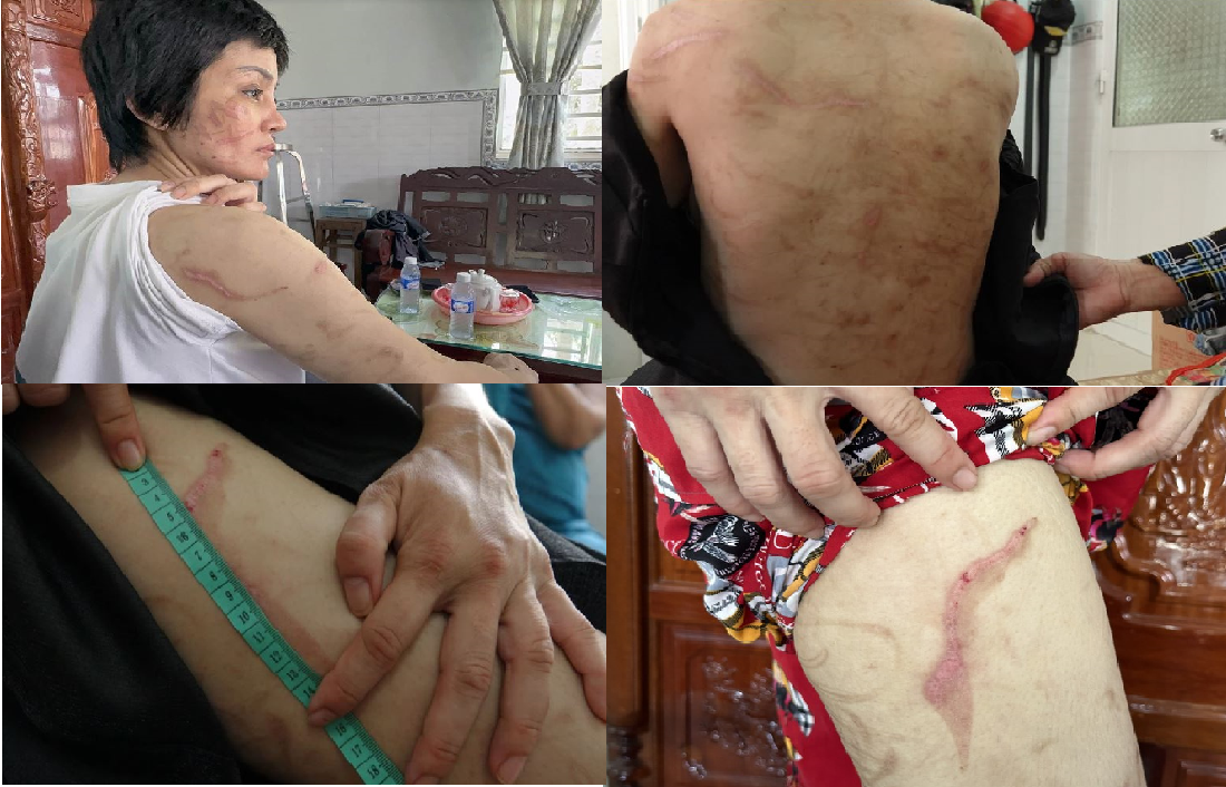Chi chít vết thương đã thành sẹo trên cơ thể chị Giao. Ảnh: Hoài Thanh