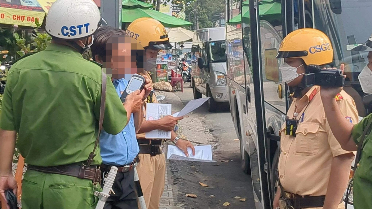 Chiều 26/10, lực lượng chức năng TP.HCM dừng nhiều xe của nhà xe Thành Bưởi để kiểm tra giấy tờ, nồng độ cồn của các tài xế và kiểm tra bên trong trụ sở công ty.