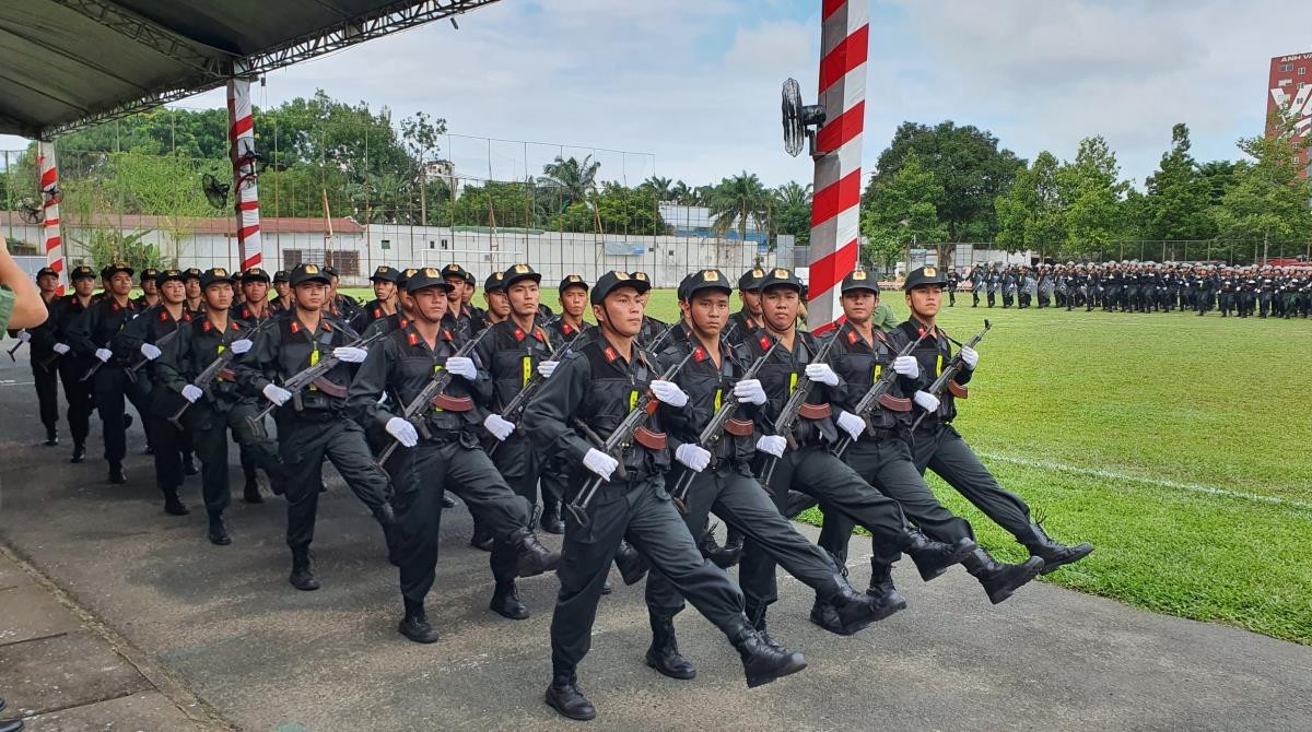 Trung đoàn Cảnh sát cơ động dự bị chiến đấu thuộc Công an TP.HCM được thành lập với 1.279 cán bộ, chiến sĩ. (Ảnh: Nguyễn Hòa)