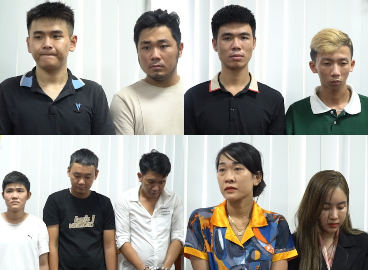Theo đó, Cơ quan CSĐT khởi tố, bắt tạm giam Trần Tiến Thành (35 tuổi, quê Đắk Lắk), Trần Tiến Đạt (28 tuổi, em ruột Thành), Nguyễn Thị Thanh Xuân (38 tuổi, sống như vợ chồng với Thành), Lưu Trường Giang (21 tuổi, ngụ TP Thủ Đức), Bùi Phạm Yến Nhi (26 tuổi, quê Đắk Lắk), Bùi Thị Ngọc Hiếu (27 tuổi, quê Tiền Giang), Nguyễn Ngọc Sơn (31 tuổi, quê Đắk Nông), Nguyễn Văn Quyết (29 tuổi), Nguyễn Văn Hưng (27 tuổi), Ngô Văn Tùng (27 tuổi, cùng ngụ TP Hải Phòng), Nguyễn Minh Hải (31 tuổi, ngụ tỉnh Bà Rịa - Vũng Tàu) về tội Làm giả con dấu, tài liệu của cơ quan tổ chức; khởi tố, bắt tạm giam Lê Thị Duyên (27 tuổi, ngụ quận 12) về tội Lừa đảo chiếm đoạt tài sản.