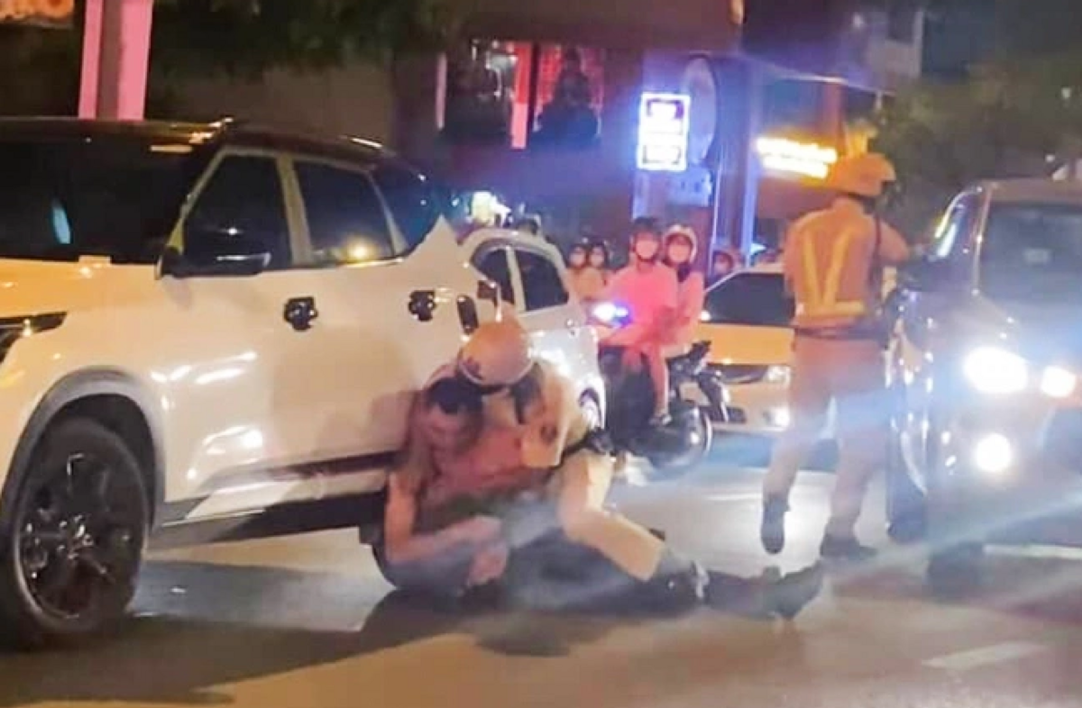 CSGT khống chế tài xế có biểu hiện say xỉn, chống đối (Ảnh: N.A)
