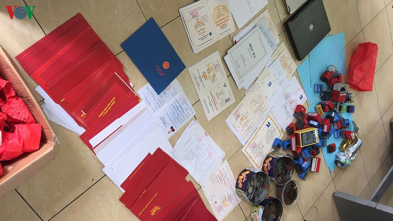 Các đối tượng bị bắt để điều tra về hành vi “Mua bán, làm giả giấy tờ, văn bản, chứng chỉ”, quy định tại Điều 341 Bộ Luật hình sự.