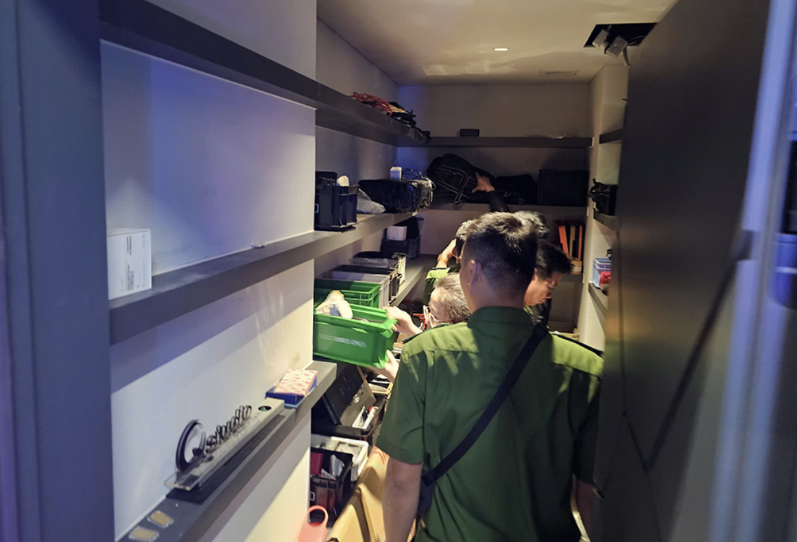 Tối 13/10, công an khám xét căn hộ cao cấp của Ngân tại phường Cát Lái, TP.HCM, thu giữ nhiều tài liệu, vật chứng phục vụ điều tra.