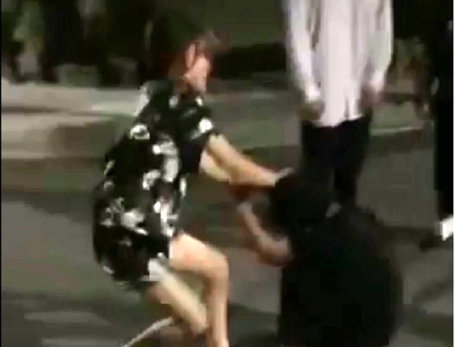 Hình ảnh nữ sinh Hải Phòng bị túm tóc, đánh tới tấp. (Ảnh cắt từ clip)