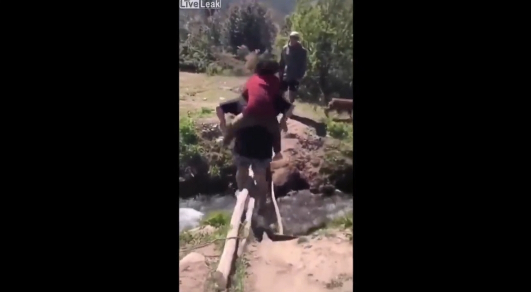 Cõng bạn gái qua cầu khỉ, chàng trai nhận cái kết đau đớn