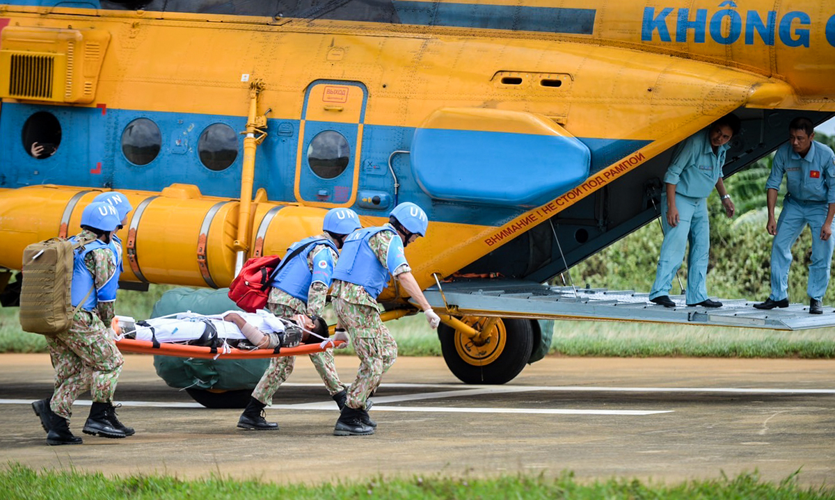 Một giờ sau, máy bay trực thăng tiếp cận hiện trường để sơ cứu cho người lính bị thương và đưa đến bệnh viện dã chiến cấp 2 để điều trị. Sau khi máy bay trực thăng rời đi cũng là lúc buổi quan sát tình huống thực hành tích hợp kết thúc.