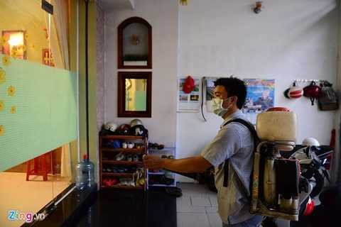 | Cơ quan Y tế phun thuốc diệt muỗi ở phường Thạnh Mỹ Lợi, quận 2, TP HCM, nơi có bệnh nhân dương tính với virus này. Ảnh: Thanh Tùng. |