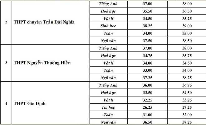Ở các lớp chuyên trong các trường THPT, lớp chuyên Anh của Trường THPT Gia Định có điểm chuẩn cao nhất với NV1 là 36 điểm; NV2 là 36,75.