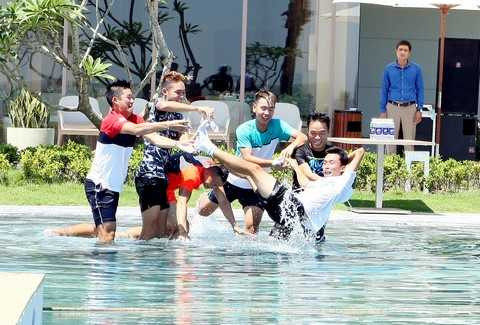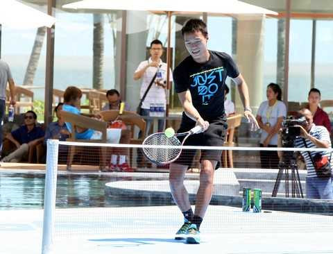 | Đỗ Minh Quân và Phạm Minh Tuấn thi đấu biểu diễn trên sân tennis nổi tại bể bơi nước mặn lớn nhất Việt Nam |