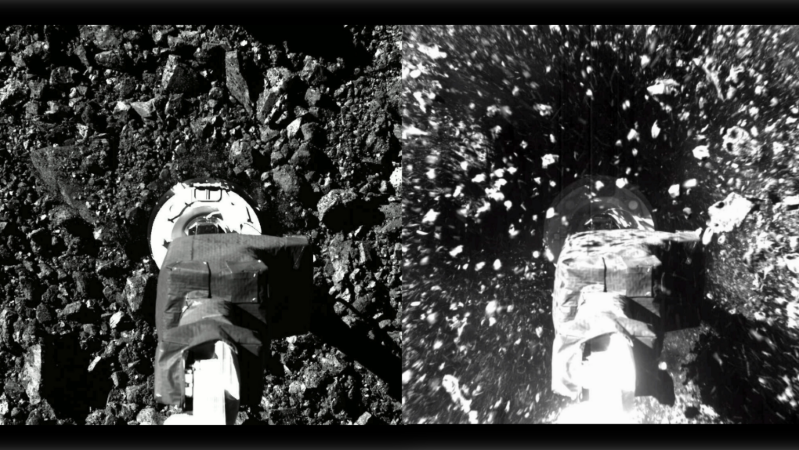 "Đầu tròn ở cuối cánh tay là phần duy nhất của OSIRIS-REx tiếp xúc với bề mặt Bennu trong sự kiện thu thập mẫu. Ở giữa chuỗi hình ảnh, đầu lấy mẫu tự định vị để tiếp xúc với bề mặt của tiểu hành tinh... Phần lớn việc thu thập mẫu diễn ra trong vòng 3 giây đầu tiên", NASA cho biết