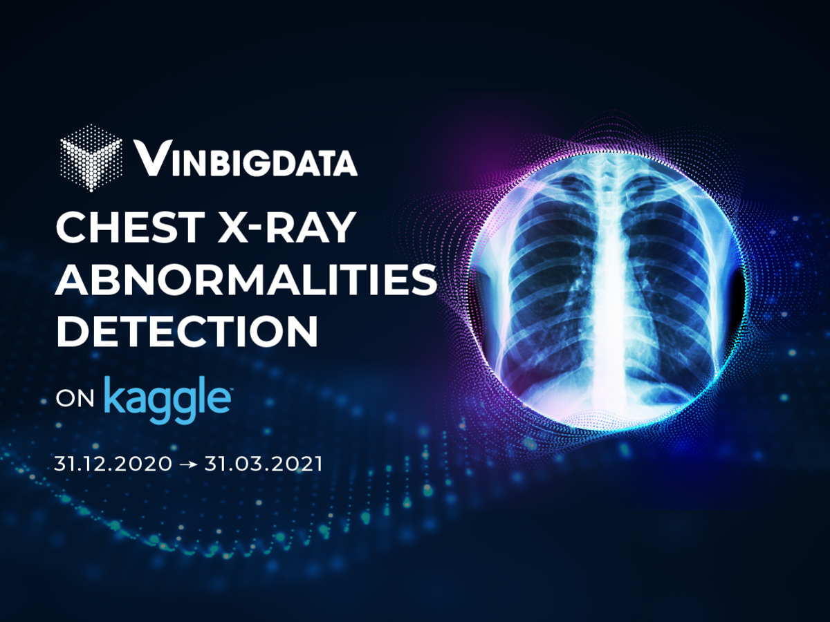 Cuộc thi “Ứng dụng AI phát hiện điểm bất thường trên ảnh X-quang lồng ngực” do Viện Nghiên cứu Dữ liệu lớn VinBigdata tổ chức, được triển khai toàn cầu trên Kaggle (sân chơi uy tín dành cho cộng đồng khoa học dữ liệu) từ 31/12/2020 đến ngày 31/3/2021.