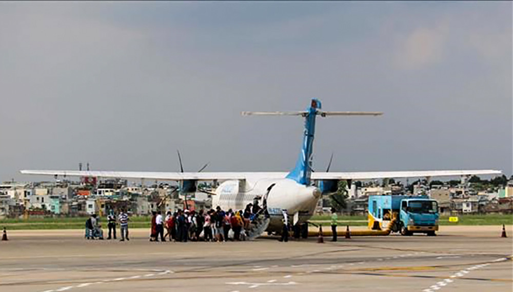 Hành khách ra khỏi máy bay tại sân bay Tân Sơn Nhất. Ảnh: Thanh Vũ - TTXVN
