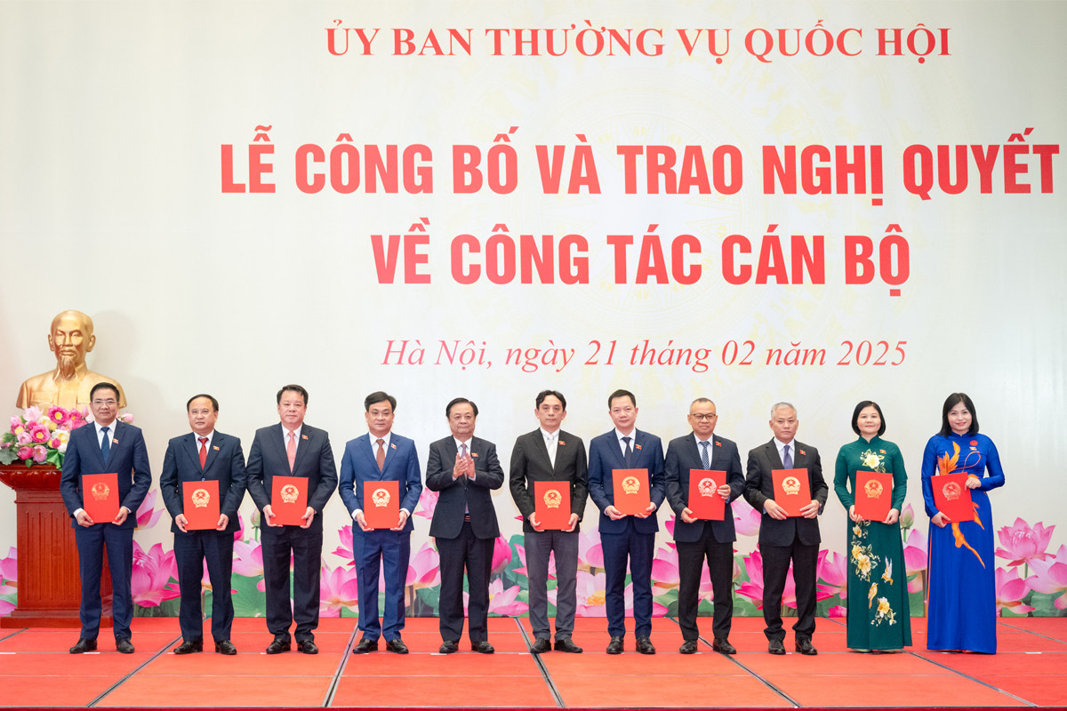 Chiều 21/2, Ủy ban Thường vụ Quốc hội tổ chức lễ công bố và trao nghị quyết về công tác cán bộ với Phó Chủ nhiệm các Ủy ban của Quốc hội, các Ủy viên là đại biểu Quốc hội hoạt động chuyên trách tại Hội đồng Dân tộc, các Ủy ban của Quốc hội và Văn phòng Quốc hội.
