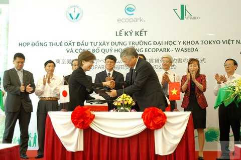 Cũng trong buổi lễ, Ecopark cùng Học viện Y khoa Waseda ký hợp đồng cho thuê đất đầu tư xây dựng trường Đại học Tokyo Việt Nam bao gồm: khu giảng đường, nghiên cứu, thực hành, khu thể thao phức hợp trong nhà, ngoài trời….