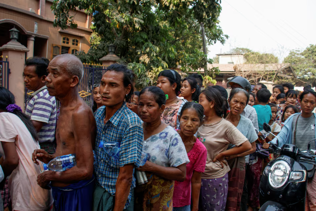 Khẩu hiệu kêu gọi cùng hỗ trợ người dân Myanmar khỏi khó khăn, ảnh hưởng sau trận động đất.