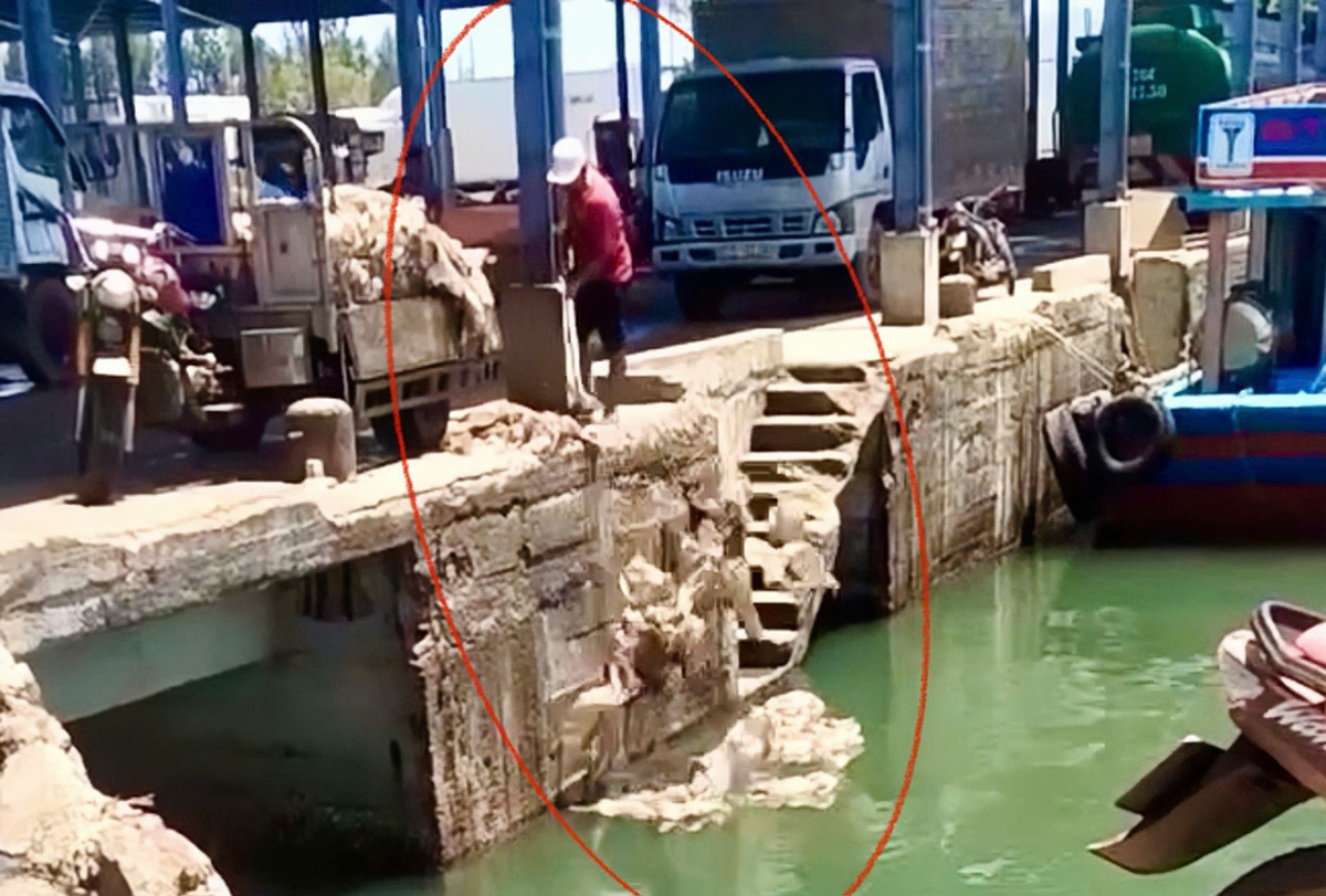 Đêm 8/9, một trang mạng xã hội tại Bình Định đăng tải clip một người đàn ông làm việc tại Cảng cá Đề Gi (thuộc xã cát Khánh, huyện Phù Cát) dùng xẻng gạt một lượng lớn bao nilong trên xe ba gác xuống biển.