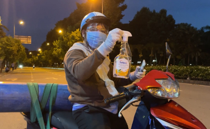 Hình ảnh anh Vân bất chấp lệnh cấm giới nghiêm ra đường mua bình oxy về cứu con trai.