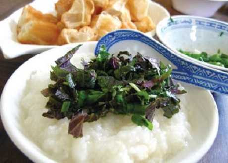 Bạn cũng có thể lấy một nắm lá tía tô tươi, 2 củ hành và 3 lát gừng, tất cả thái nhỏ cho vào bát, đập một quả trứng gà rồi múc cháo hoa vào trộn đều ăn nóng, bệnh cảm sẽ hết.