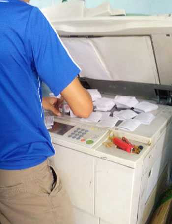 Một số cửa hàng photocopy trong khuôn viên ĐH Sư phạm Hà Nội đã hoạt động hết công suất để phục vụ nhu cầu sao chép tài liệu của thí sinh thi tuyển công chức Tổng cục Thuế.