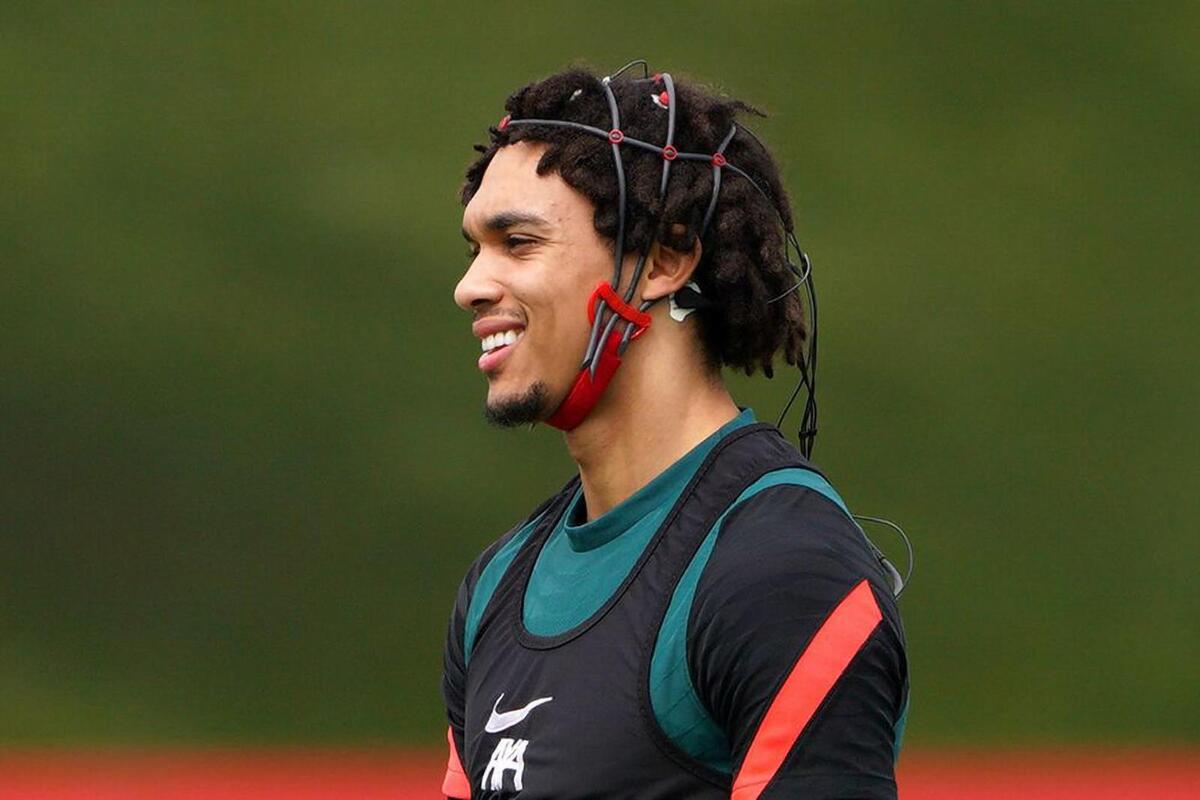 Thiết bị đọc sóng não mà Trent Alexander-Arnold sử dụng khi tập đá phạt (Ảnh: The Mirror)