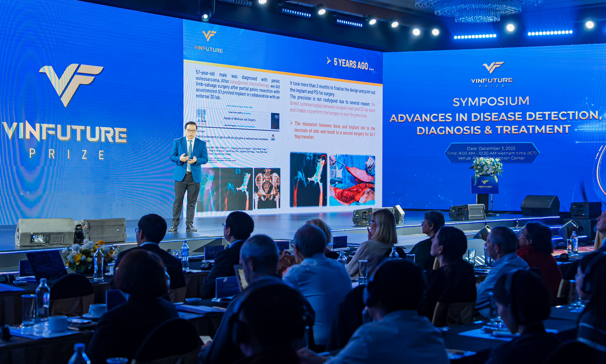 Tại tọa đàm "Bước tiến trong Phát hiện, Chẩn đoán và Điều trị bệnh" trong khuôn khổ Tuần lễ Khoa học - Công nghệ VinFuture 2025, GS.TS Trần Trung Dũng - Tổng Giám đốc Hệ thống Y tế Vinmec, Chủ tịch Hiệp hội Công nghệ 3D trong Y học Việt Nam, đã có những chia sẻ về công nghệ in 3D - một bước đột phá trong phẫu thuật chỉnh hình.
