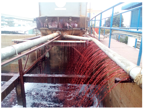 Theo đó, sau khi dệt nhuộm vải thì nước thải sẽ được tích vào bể chứa nước thải. Trong quá trình vận hành, nước thải tại đây được bơm vào bể keo tụ thứ 2. Tại bể này một hợp chất có tên PGα21Ca sẽ được tự động đong với khối lượng xác định và tự động đổ vào bể khi nước đầy. Sau đó, cánh khuấy sẽ khuếch tán hóa chất đều trong nước để làm sạch nước.