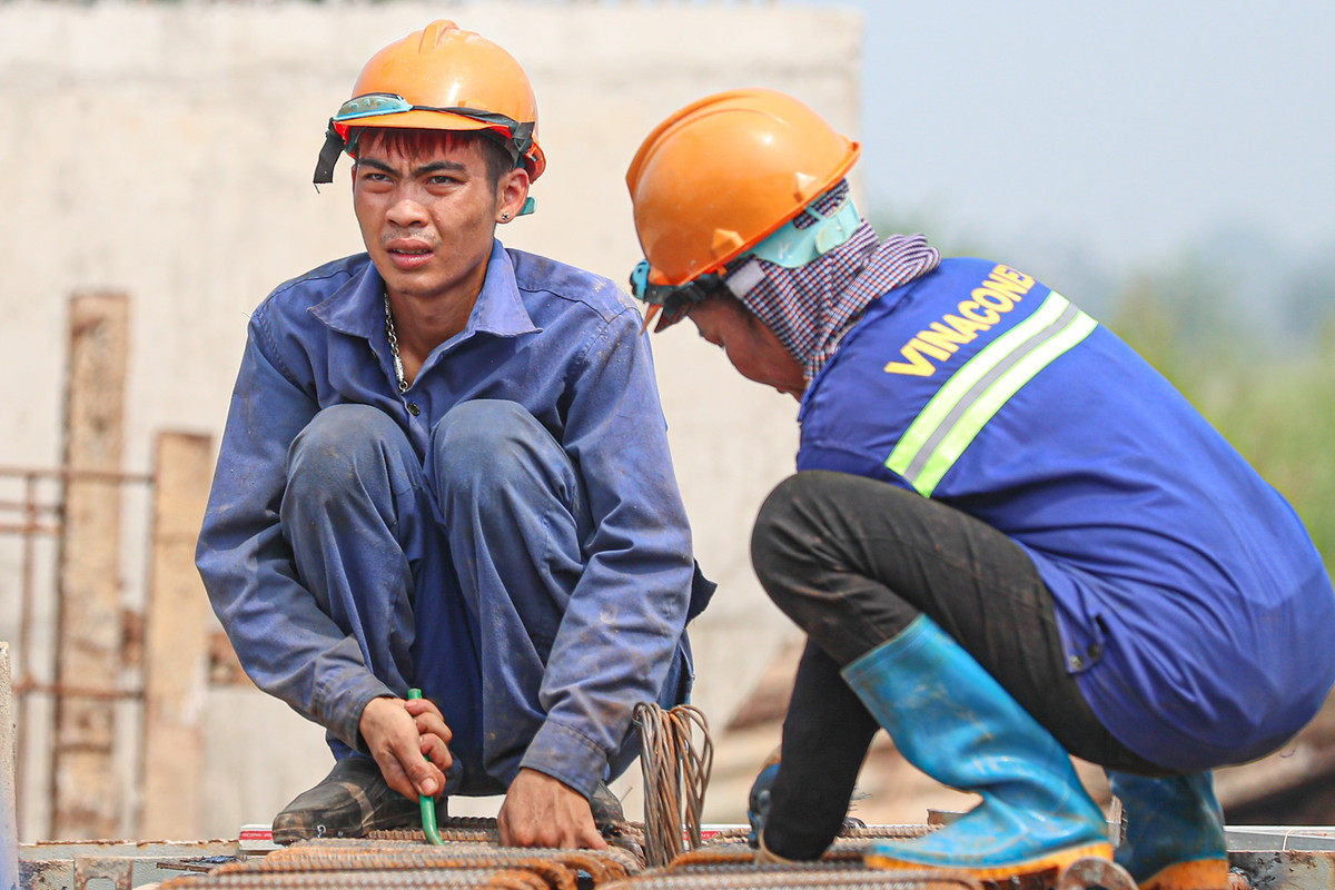 Công nhân hăng say làm việc trong những ngày nghỉ lễ giữa trời nắng như đổ lửa.