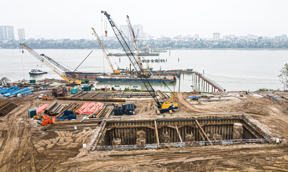 Đến nay, phần cầu chính đã hoàn thành khoan 114/128 cọc. Đây là hạng mục nền móng quan trọng, tạo tiền đề cho các bước thi công tiếp theo. Đối với công tác giải phóng mặt bằng, khu vực phường Bồ Đề đã bàn giao khoảng 7,6/27ha; riêng phía phường Cửa Nam hiện chưa có mặt bằng để triển khai. Ban quản lý cho biết sẽ tổ chức thi công tối đa trên các khu vực đã được bàn giao, tránh để gián đoạn tiến độ chung.