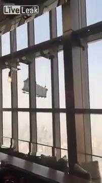 (VTC News) - Hai công nhân lau kính ở một tòa nhà cao tầng ở Thượng Hải, Trung Quốc được phen 'mất vía' vì gió mạnh khiến cáp treo đung đưa và va đập vào cửa kính của tòa nhà.