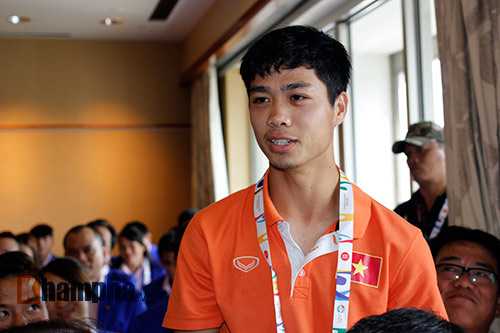 | Công Phượng cám ơn sự quan tâm của Bộ trưởng và hứa sẽ cố gắng thi đấu. (Ảnh: Khám phá). |